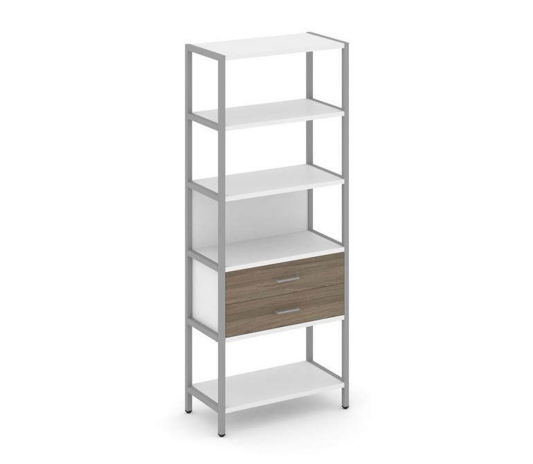 Shelf System Односекционный стеллаж пятиярусный с ящиками SN.STM-512 Белый/Вяз Благородный/Металл Се