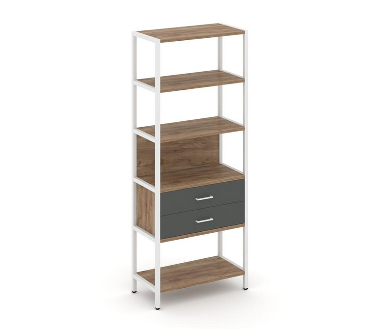 Shelf System Односекционный стеллаж пятиярусный с ящиками SN.STM-512 Дуб Табак/Антрацит/Металл Белый