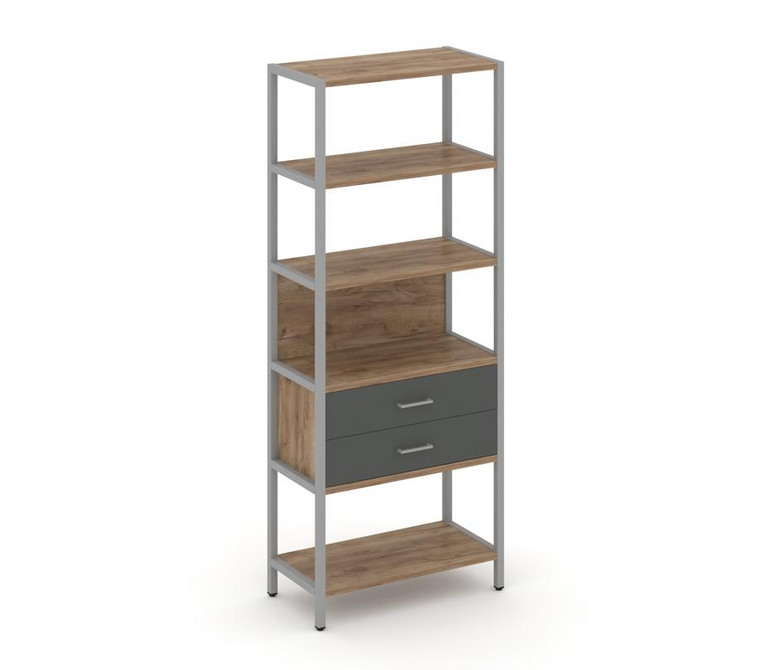 Shelf System Односекционный стеллаж пятиярусный с ящиками SN.STM-512 Дуб Табак/Антрацит/Металл Серый