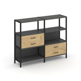 Shelf System Односекционный стеллаж пятиярусный с ящиками SN.STM-512 Дуб Табак/Металл Черный 810*400