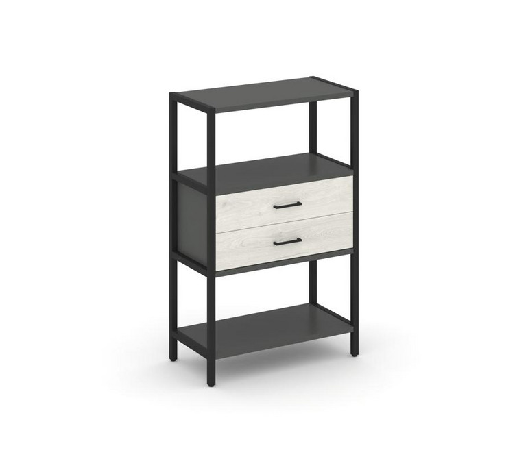 Shelf System Односекционный стеллаж трехярусный с ящиками SN.STM-312 Антрацит/Дуб Наварра/Металл Чер