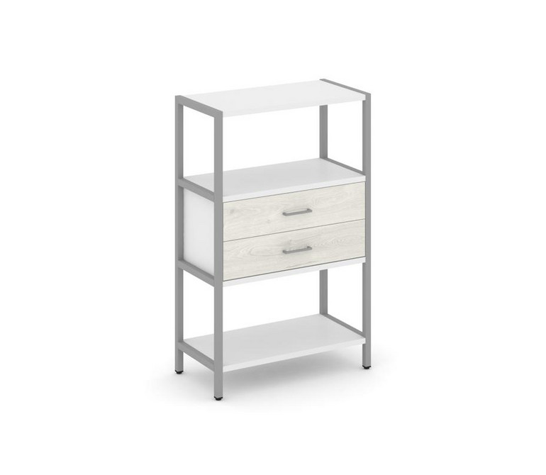 Shelf System Односекционный стеллаж трехярусный с ящиками SN.STM-312 Белый/Дуб Наварра/Металл Серый