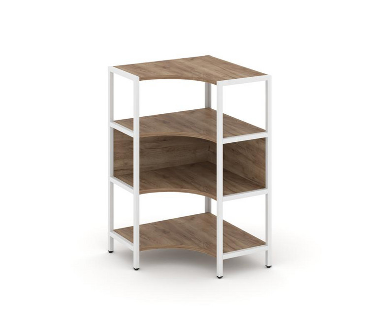 Shelf System Односекционный угловой стеллаж трехярусный SN.STMU-311 Дуб Табак/Металл Белый 810*810*1