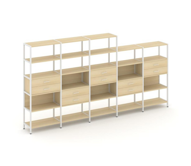 Shelf System Пятисекционный стеллаж пятиярусный с ящиками SN.STM-551 Акация Лорка/Металл Белый 3930*