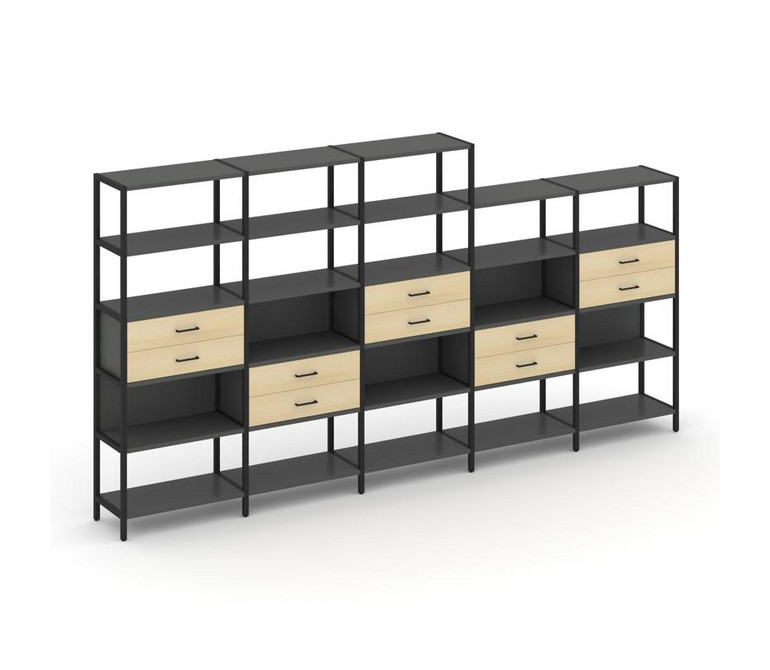 Shelf System Пятисекционный стеллаж пятиярусный с ящиками SN.STM-551 Антрацит/Акация Лорка/Металл Че