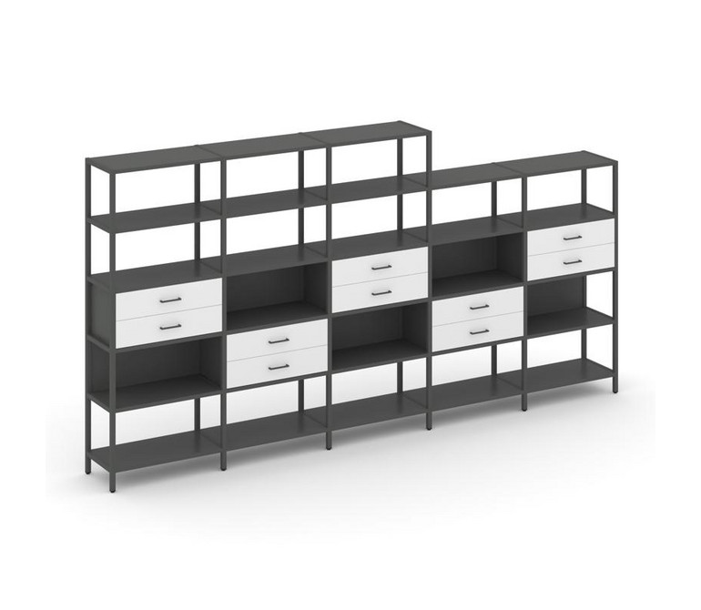 Shelf System Пятисекционный стеллаж пятиярусный с ящиками SN.STM-551 Антрацит/Белый/Металл Антрацит