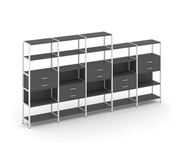 Shelf System Пятисекционный стеллаж пятиярусный с ящиками SN.STM-551 Антрацит/Металл Белый 3930*400*