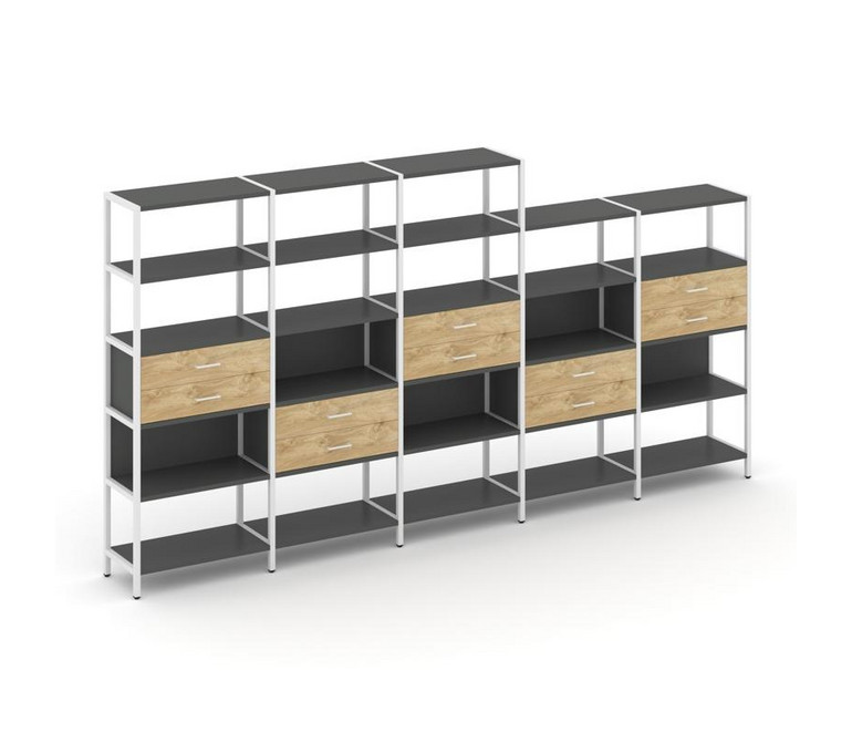 Shelf System Пятисекционный стеллаж пятиярусный с ящиками SN.STM-551 Антрацит/Тиквуд Светлый/Металл