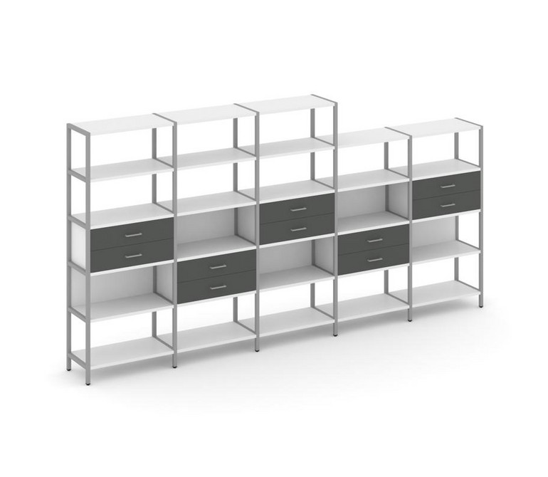 Shelf System Пятисекционный стеллаж пятиярусный с ящиками SN.STM-551 Белый/Антрацит/Металл Серый 393