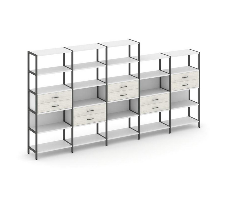 Shelf System Пятисекционный стеллаж пятиярусный с ящиками SN.STM-551 Белый/Дуб Наварра/Металл Антрац