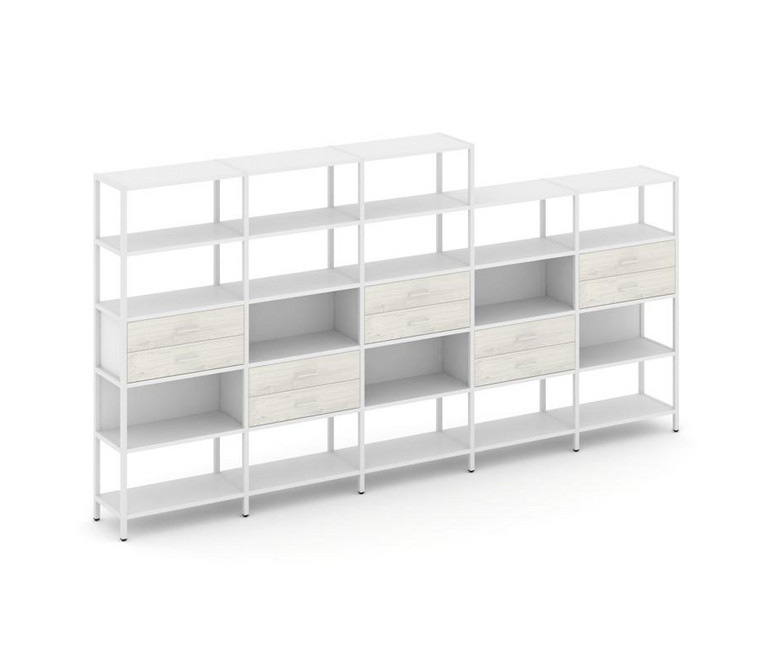 Shelf System Пятисекционный стеллаж пятиярусный с ящиками SN.STM-551 Белый/Дуб Наварра/Металл Белый