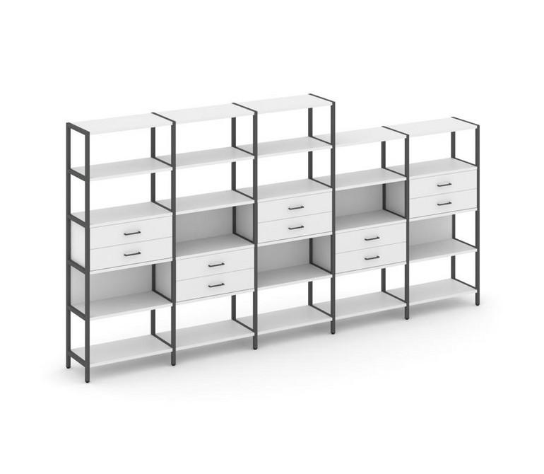 Shelf System Пятисекционный стеллаж пятиярусный с ящиками SN.STM-551 Белый/Металл Антрацит 3930*400*