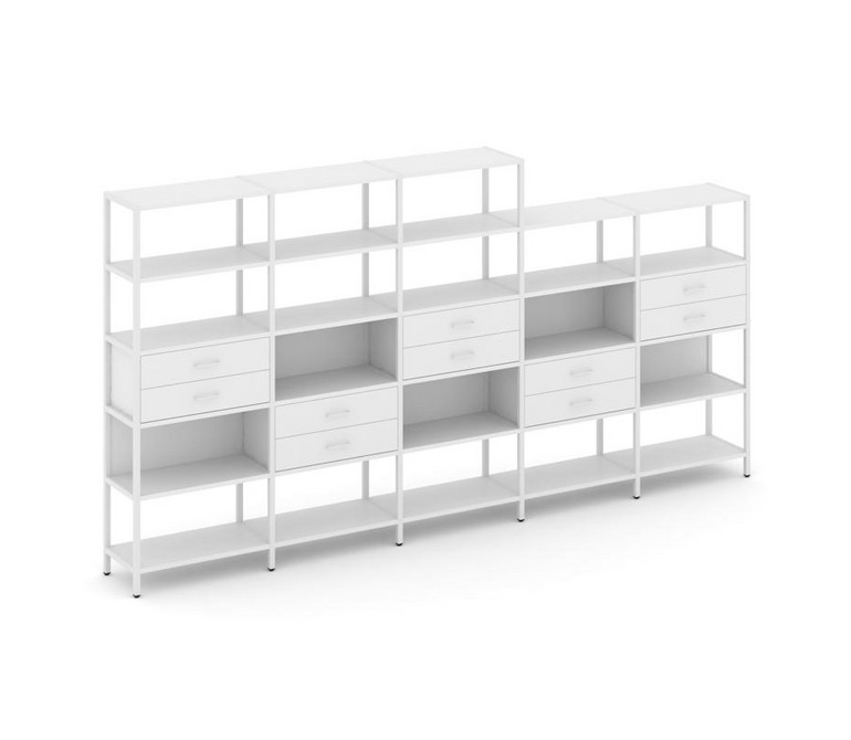 Shelf System Пятисекционный стеллаж пятиярусный с ящиками SN.STM-551 Белый/Металл Белый 3930*400*198