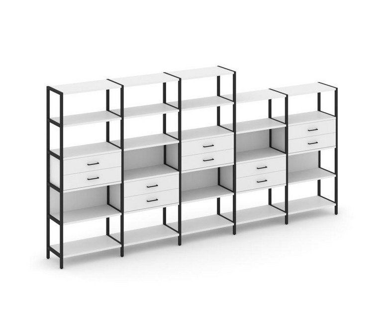Shelf System Пятисекционный стеллаж пятиярусный с ящиками SN.STM-551 Белый/Металл Черный 3930*400*19