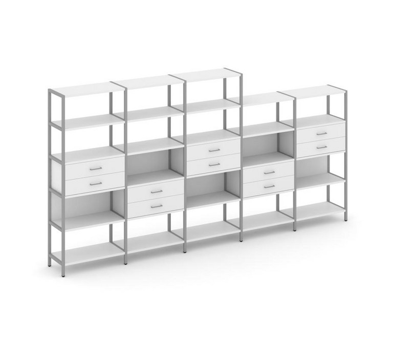 Shelf System Пятисекционный стеллаж пятиярусный с ящиками SN.STM-551 Белый/Металл Серый 3930*400*198