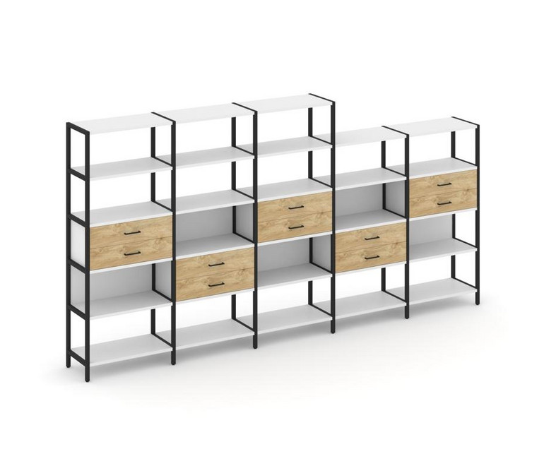 Shelf System Пятисекционный стеллаж пятиярусный с ящиками SN.STM-551 Белый/Тиквуд Светлый/Металл Чер