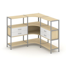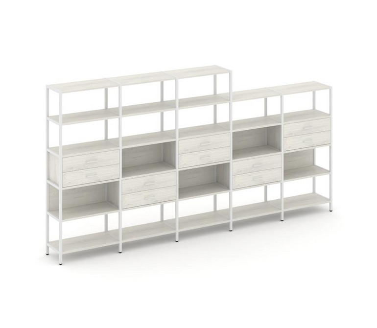 Shelf System Пятисекционный стеллаж пятиярусный с ящиками SN.STM-551 Дуб Наварра/Металл Белый 3930*4