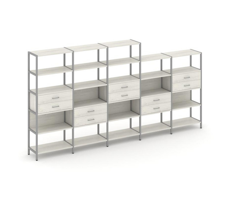 Shelf System Пятисекционный стеллаж пятиярусный с ящиками SN.STM-551 Дуб Наварра/Металл Серый 3930*4