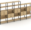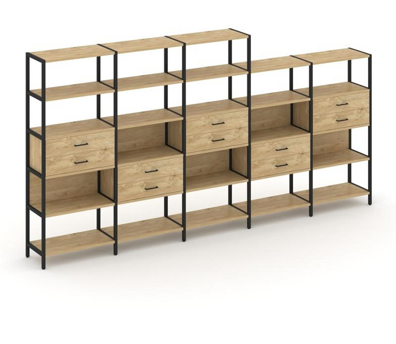 Shelf System Пятисекционный стеллаж пятиярусный с ящиками SN.STM-551 Тиквуд Светлый/Металл Черный 39