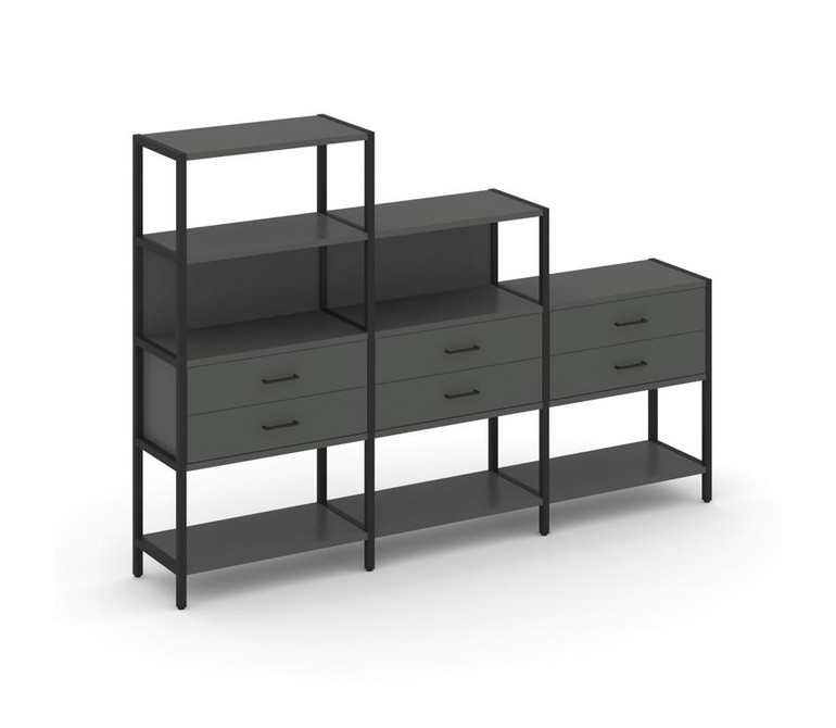 Shelf System Трехсекционный стеллаж четырех/трех/двухярусный с ящиками SN.STM-431 Антрацит/Металл Че