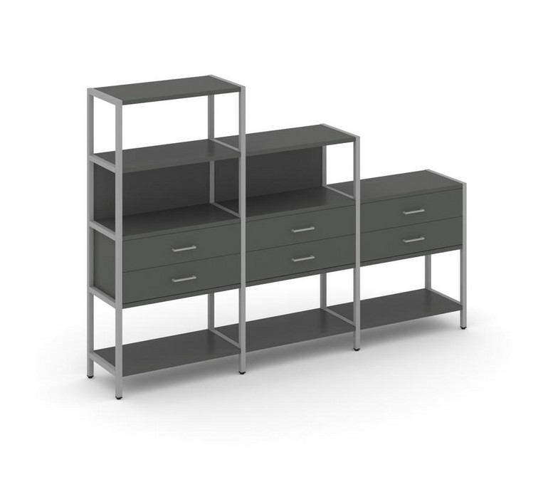 Shelf System Трехсекционный стеллаж четырех/трех/двухярусный с ящиками SN.STM-431 Антрацит/Металл Се