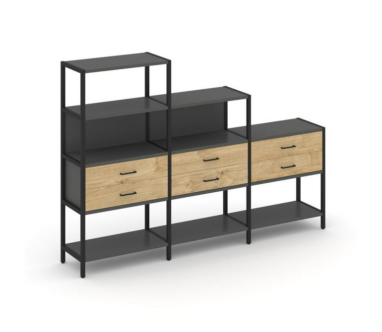 Shelf System Трехсекционный стеллаж четырех/трех/двухярусный с ящиками SN.STM-431 Антрацит/Тиквуд Св