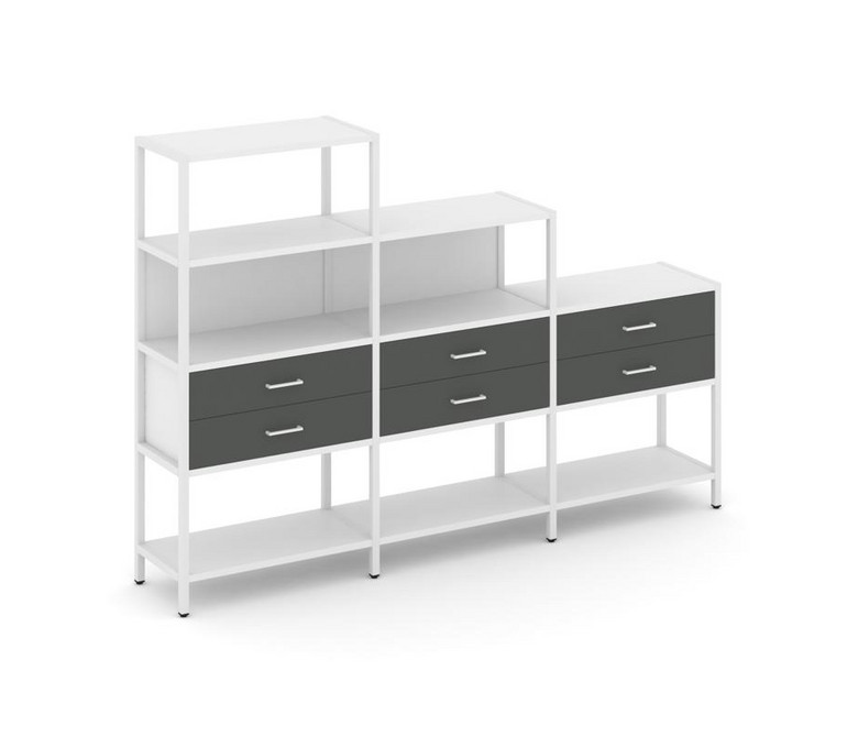 Shelf System Трехсекционный стеллаж четырех/трех/двухярусный с ящиками SN.STM-431 Белый/Антрацит/Мет