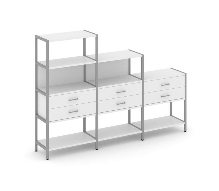 Shelf System Трехсекционный стеллаж четырех/трех/двухярусный с ящиками SN.STM-431 Белый/Металл Серый