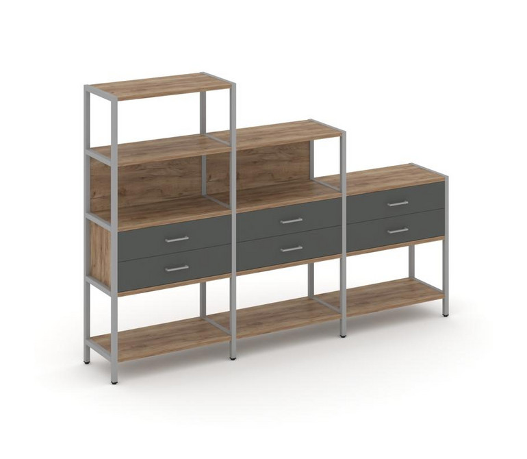 Shelf System Трехсекционный стеллаж четырех/трех/двухярусный с ящиками SN.STM-431 Дуб Табак/Антрацит