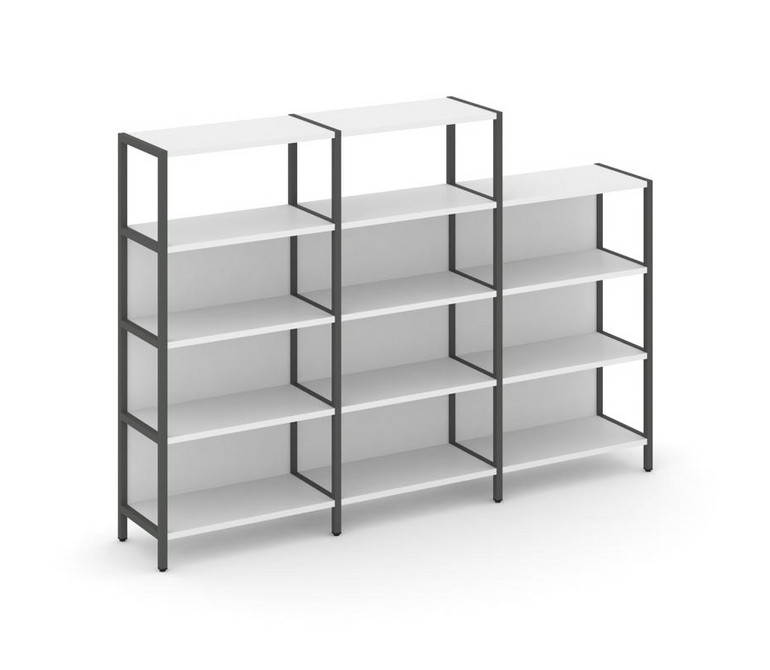 Shelf System Трехсекционный стеллаж четырех/трехярусный SN.STM-432 Белый/Металл Антрацит 2370*400*87