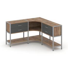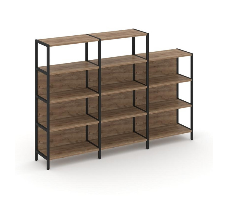 Shelf System Трехсекционный стеллаж четырех/трехярусный SN.STM-432 Дуб Табак/Металл Черный 2370*400*