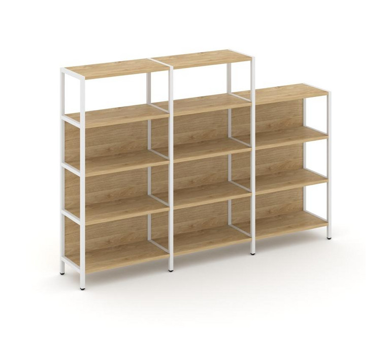 Shelf System Трехсекционный стеллаж четырех/трехярусный SN.STM-432 Тиквуд Светлый/Металл Белый 2370*