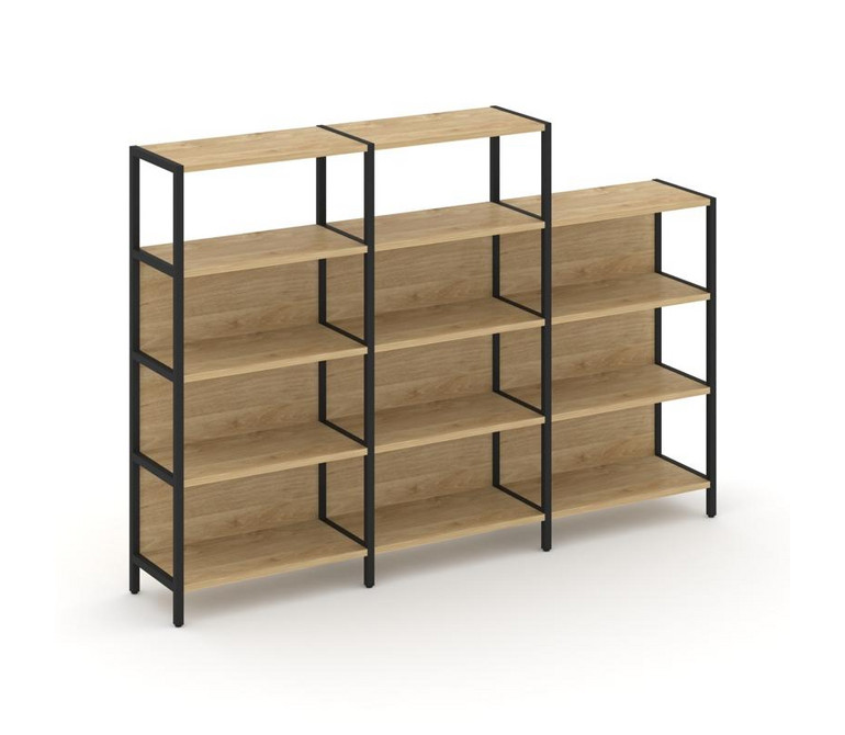 Shelf System Трехсекционный стеллаж четырех/трехярусный SN.STM-432 Тиквуд Светлый/Металл Черный 2370