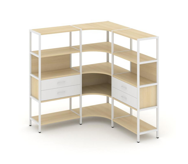 Shelf System Трехсекционный угловой стеллаж четырехярусный с ящиками SN.STMU-431 Акация Лорка/Белый/