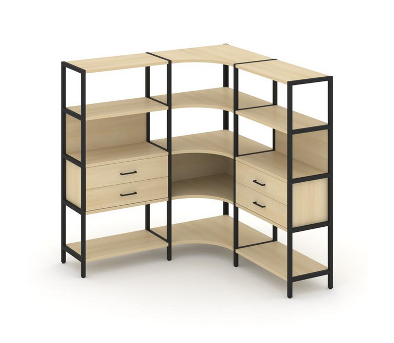 Shelf System Трехсекционный угловой стеллаж четырехярусный с ящиками SN.STMU-431 Акация Лорка/Металл