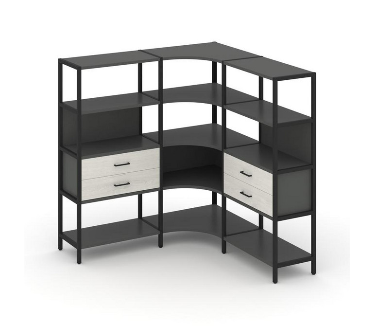 Shelf System Трехсекционный угловой стеллаж четырехярусный с ящиками SN.STMU-431 Антрацит/Дуб Наварр