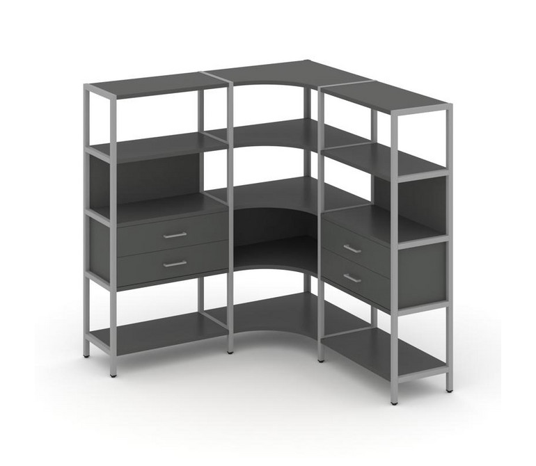 Shelf System Трехсекционный угловой стеллаж четырехярусный с ящиками SN.STMU-431 Антрацит/Металл Сер