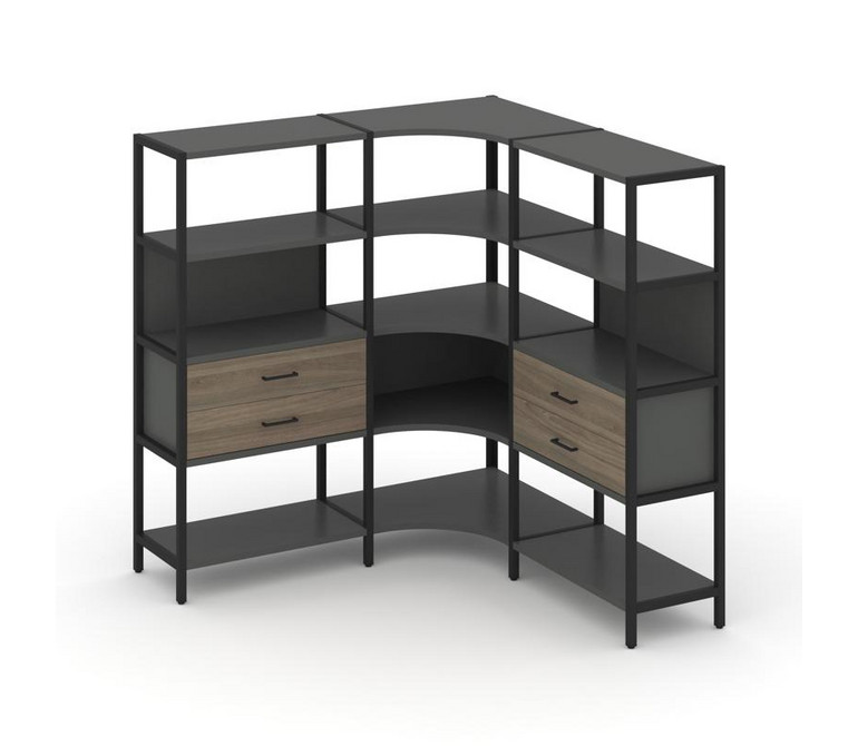 Shelf System Трехсекционный угловой стеллаж четырехярусный с ящиками SN.STMU-431 Антрацит/Вяз Благор
