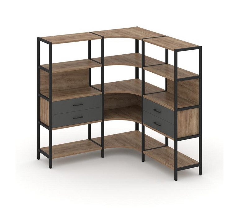 Shelf System Трехсекционный угловой стеллаж четырехярусный с ящиками SN.STMU-431 Дуб Табак/Антрацит/