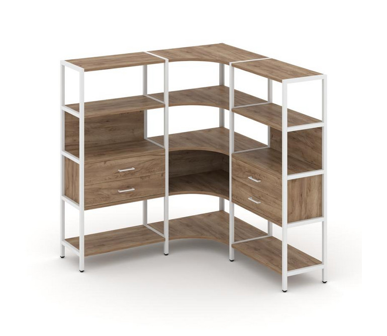 Shelf System Трехсекционный угловой стеллаж четырехярусный с ящиками SN.STMU-431 Дуб Табак/Металл Бе