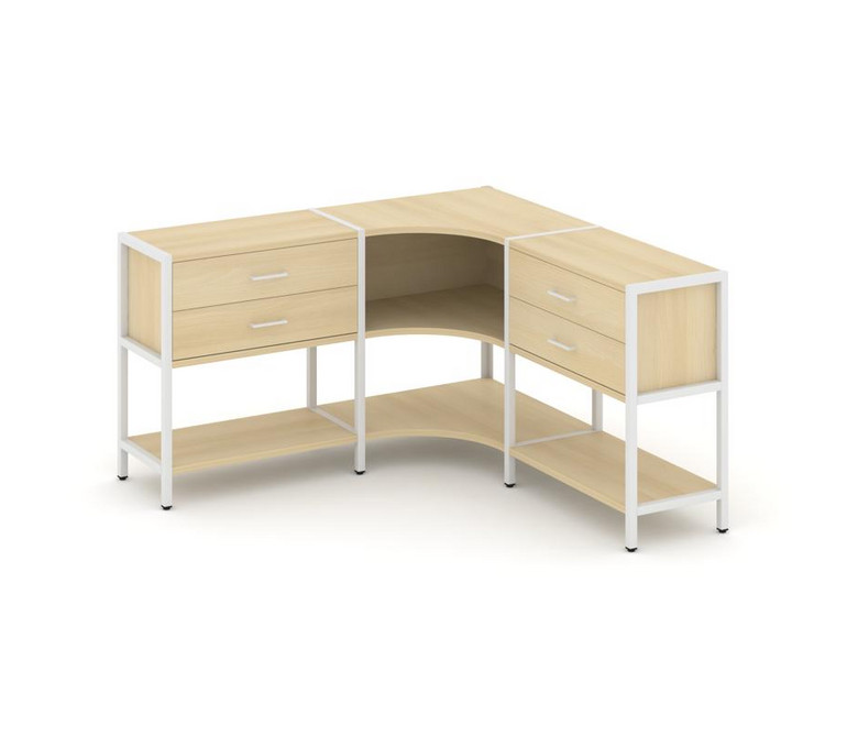 Shelf System Трехсекционный угловой стеллаж двухярусный с ящиками SN.STMU-231 Акация Лорка/Металл Бе
