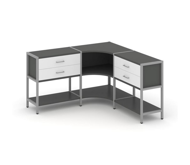 Shelf System Трехсекционный угловой стеллаж двухярусный с ящиками SN.STMU-231 Антрацит/Белый/Металл