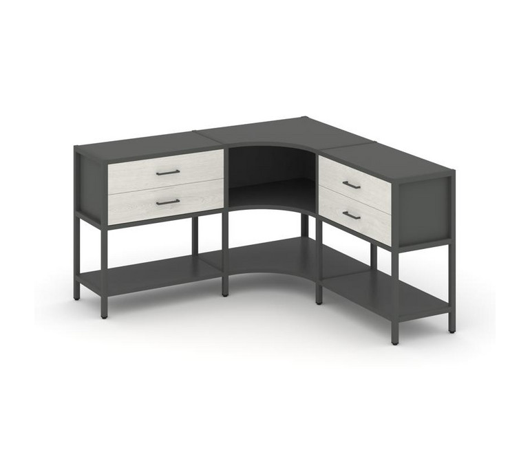 Shelf System Трехсекционный угловой стеллаж двухярусный с ящиками SN.STMU-231 Антрацит/Дуб Наварра/М