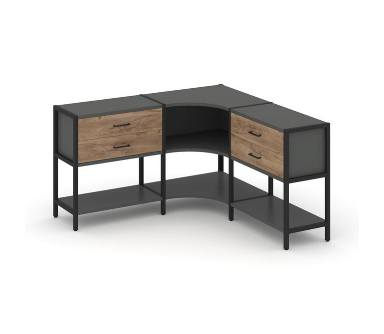 Shelf System Трехсекционный угловой стеллаж двухярусный с ящиками SN.STMU-231 Антрацит/Дуб Табак/Мет