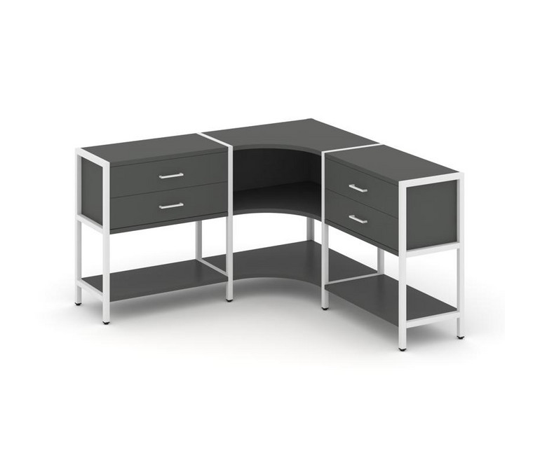 Shelf System Трехсекционный угловой стеллаж двухярусный с ящиками SN.STMU-231 Антрацит/Металл Белый