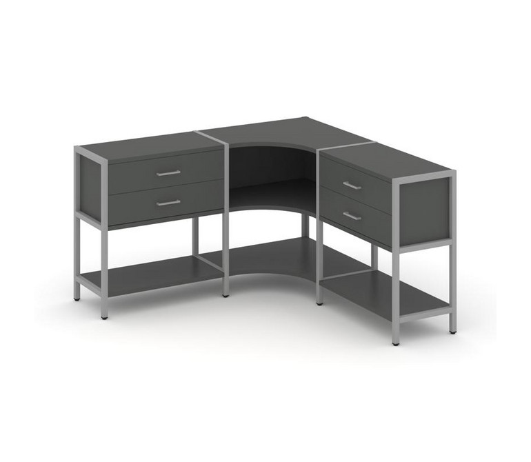 Shelf System Трехсекционный угловой стеллаж двухярусный с ящиками SN.STMU-231 Антрацит/Металл Серый
