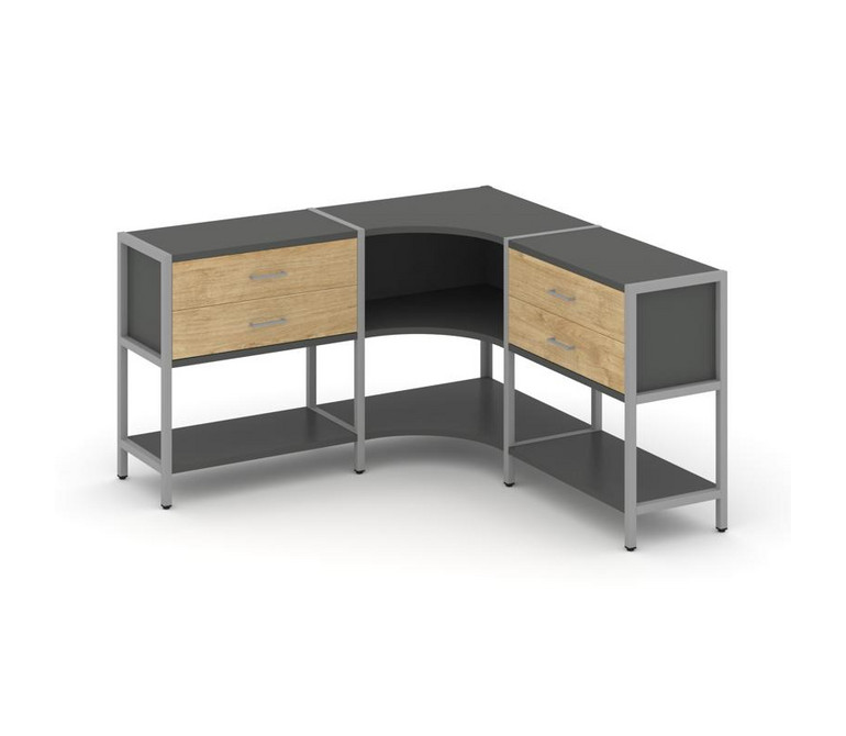 Shelf System Трехсекционный угловой стеллаж двухярусный с ящиками SN.STMU-231 Антрацит/Тиквуд Светлы