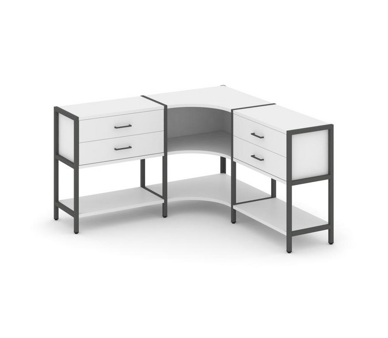Shelf System Трехсекционный угловой стеллаж двухярусный с ящиками SN.STMU-231 Белый/Металл Антрацит