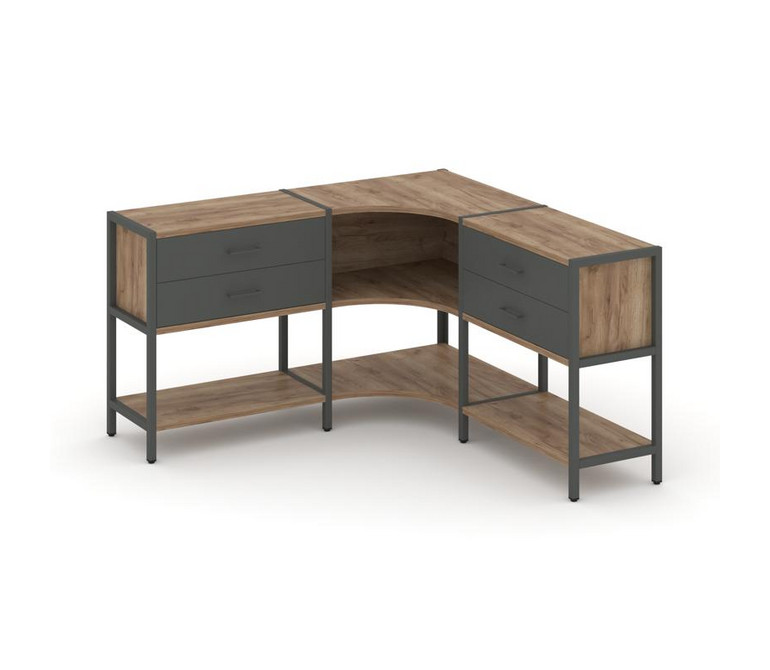 Shelf System Трехсекционный угловой стеллаж двухярусный с ящиками SN.STMU-231 Дуб Табак/Антрацит/Мет