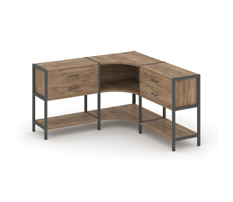 Shelf System Трехсекционный угловой стеллаж двухярусный с ящиками SN.STMU-231 Дуб Табак/Металл Антра